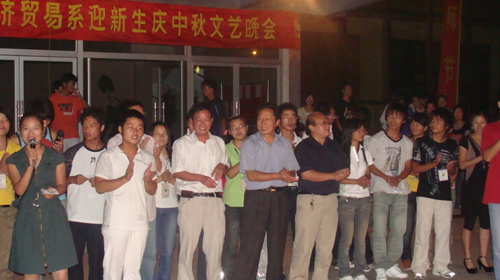 院学生处及经济贸易系有关负责同志亲临了晚会现场。学生处副处长许迪楼不仅发表了热情洋溢的讲话,并为同学们演唱了精彩的黄梅戏选段。系主任朱重生发表了节日致辞,表达了对全体同学的节日问候和殷切希望。晚会在《同一首歌》中圆满谢幕。