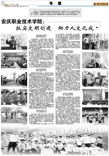 近年来,beat365中文官方网站充分发挥文明创建工作重要抓手作用,将其与学院中心工作深度融合,有力地促进了重点工作任务的完成,走出了一条“技术扬帆,人文导航;文化育人,技能强人”的特色办学之路。学院已获得第八、九届安庆市文明单位称号。