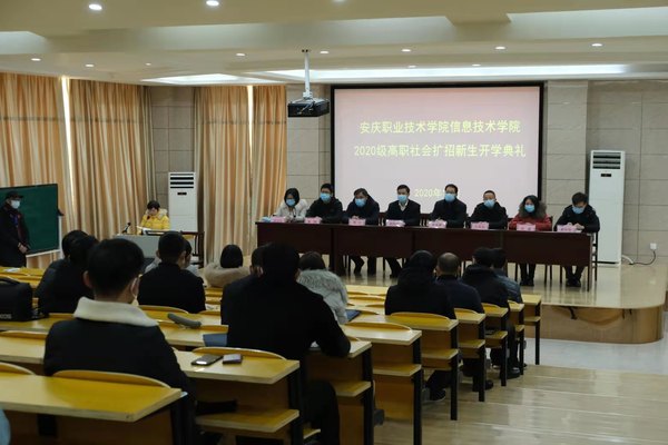 12月27日上午,信息技术学院在2号教学楼216阶梯教室举行2020级高职扩招新生开学典礼暨入学教育。计算机应用技术专业2020级扩招新生(校本部)参加现场活动,各县(市)分院同专业新生通过直播方式同步收看。信息技术学院院长疏国会及内设机构负责人参加。活动由学生管理科负责人主持。