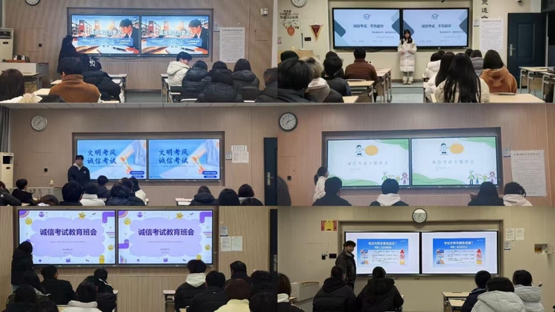 为筑牢学生诚信备考的思想意识,营造风清气正的校园学习环境,12月25日晚,现代商务学院团总支组织各班集中开展诚信考试教育,以实际行动涵养优良学风。