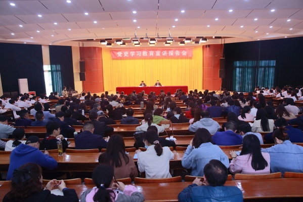 4月28日下午,beat365在图文信息中心一楼报告厅举办党史学习教育宣讲报告会。校党委书记王进作主题宣讲。党委副书记、校长毕明生主持报告会。党委委员谭维奇、李克让、沈良生、程飞和学校全体党员参加学习。