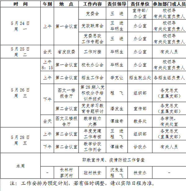 2020-2021学年第二学期第13周(5.24-5.30)工作安排