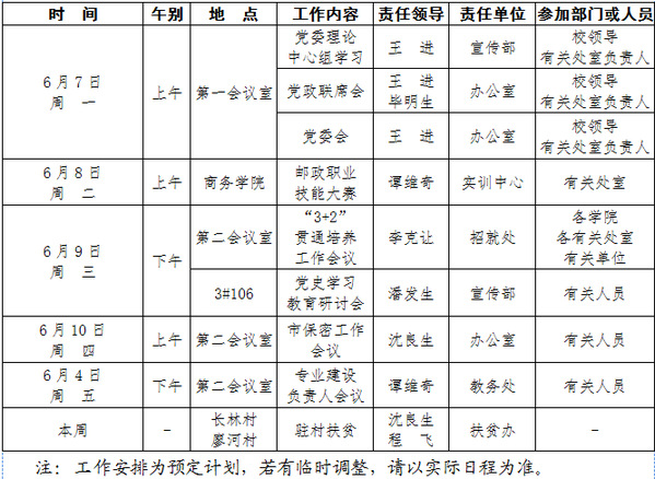 2020-2021学年第二学期第15周(6.7-6.13)工作安排