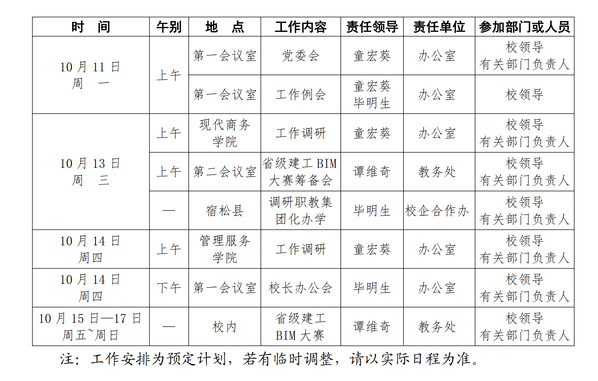 2021-2022学年第一学期第7周(10.11-10.17)工作安排