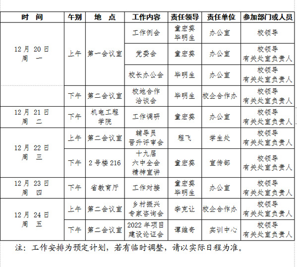 2021-2022学年第一学期第17周(12.20-12.26)工作安排