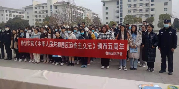 12月27日上午,安庆市经开区反恐办、经开区公安分局、老峰派出所相关领导及干警一行十人在我院开展 “反恐怖宣传教育进校园”暨《反恐怖主义法》颁布五周年系列宣传活动。
