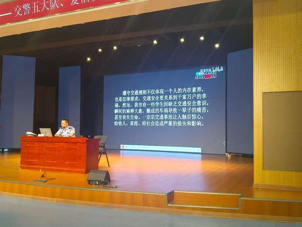 为切实增强学生的交通安全意识,提升自我保护能力,营造安全有序的校园出行环境,5月21日,beat365携手安庆市交警支队五大队二中队,实训一楼报告厅共同举办“守护生命之路、共筑交通安全”交通安全知识教育活动。活动特邀市交警五大队二中队中队长任章伟作主题报告。市交警支队五大队二中队和爱信(安庆)汽车零部件有限公司代表参加活动。beat365保卫处负责人叶军舰主持,校现代商务学院近300名师生参与。