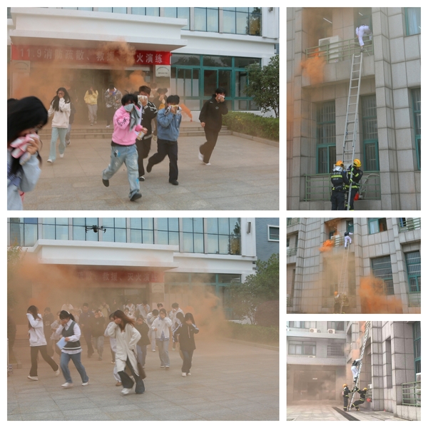 校保卫处组织同学们根据消防救援队的要求开展了逃生演练。