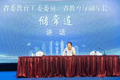 会上,安徽省委教育工委委员、省教育厅副厅长储常连回顾了二十五年来安徽高等职业教育的改革与发展成就,谋划我省今后十二年高职教育的发展,奋力眼下高职办学条件达标工程。他强调学校要提高认识,统一思想,充分认识新形势下开展职业院校办学条件达标工程的重要意义,主动作为、强化担当、聚焦目标、补齐短板,全面落实办学条件达标工程实施方案,奋力完成办学条件达标工作,相关部门要高标准、严要求部署推进全省高职院校办学条件达标核查工作;他希望全省高职院校坚持抓办学条件和内涵发展均衡同步,不断拉高标杆,携手同心,持续发力,久久为功,确保按时完成办学条件达标工作,让办学条件达标工程真正成为我省高职院校高质量发展的强力助推器,让全社会、广大学生和家长更直观感受到职业教育“前途广阔、大有可为”。