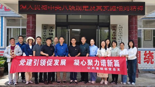 5月13日上午,公共基础部党总支书记张林带领12名党员老师,与太湖县天华镇党委副书记张四为、平岭村“两委”成员及驻村工作队共同开展“党建引领聚合力,校地共建促振兴”主题党员活动日活动。此次活动旨在深化校地合作,推动乡村振兴,强化党员教育实践,同时为乡村教育传递温暖。