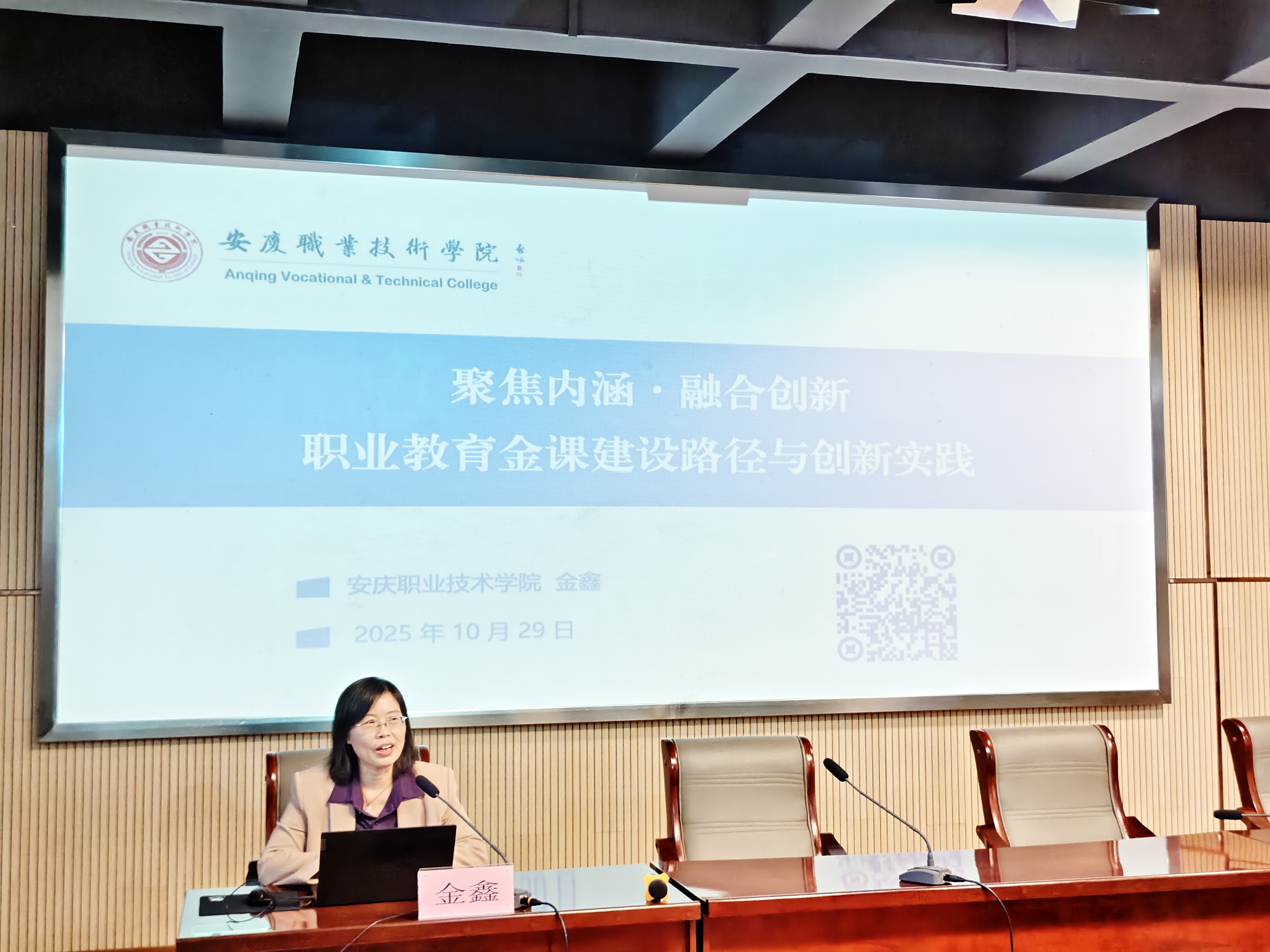 金鑫围绕“职业教育金课内涵解读”“建设路径”“课程建设案例”三大核心板块展开系统讲解。她以深厚的专业积淀与丰富的实践经验为支撑,聚焦职教金课的建设标准、课程设计要点及创新教学方法等关键领域,通过大量鲜活案例深入剖析金课建设中的核心环节。她详细阐述了如何通过产教融合、教学模式创新、数字化资源开发等路径,打造兼具高阶性、创新性和挑战度的优质课程。其讲解深入浅出、理论与实践紧密结合,使在场教师对职教金课的内涵实质与建设方向有了更为清晰、深刻的理解与把握。