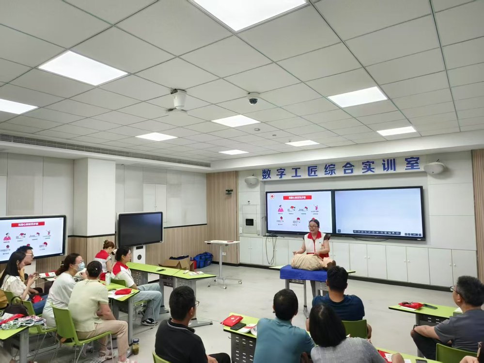 本次培训采取“线上学习+线下实操”相结合的模式。参训学员此前已通过安庆市红十字会线上学**台,系统完成视频学习和理论测试,学习内容涵盖急救概论、心肺复苏(CPR)流程、AED操作原理、气道异物梗阻急救(海姆立克法)、创伤救护理论等。线下实操环节中,市红十字会专业讲师以通俗易懂的语言,详细讲解了心肺复苏流程、自动体外除颤器使用及创伤救护技术的规范操作,并指导学员分组进行模拟急救演练,逐一纠正动作细节,确保理论知识有效转化为实际操作能力。最终,全体学员顺利完成市红十字会组织的救护员认证考核。