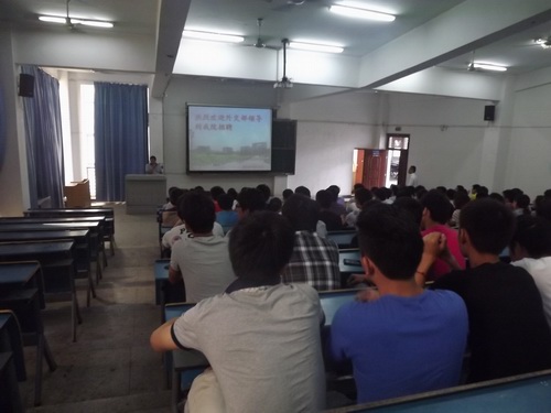 随后,外交部楼宇管理处在机电工程系216阶梯教室举行了宣讲会。宣讲会上,姜延松处长对工作岗位、招聘要求做了详细的说明,并详细回答了我院学生关心的在北京的生活、待遇以及未来奔赴驻外使领馆工作等问题。宣讲结束后,在机电系208会议室举行了面试,60余位学生带着认真准备的简历参加了面试,这批学生在经过专业测试后,将进行择优录取。
