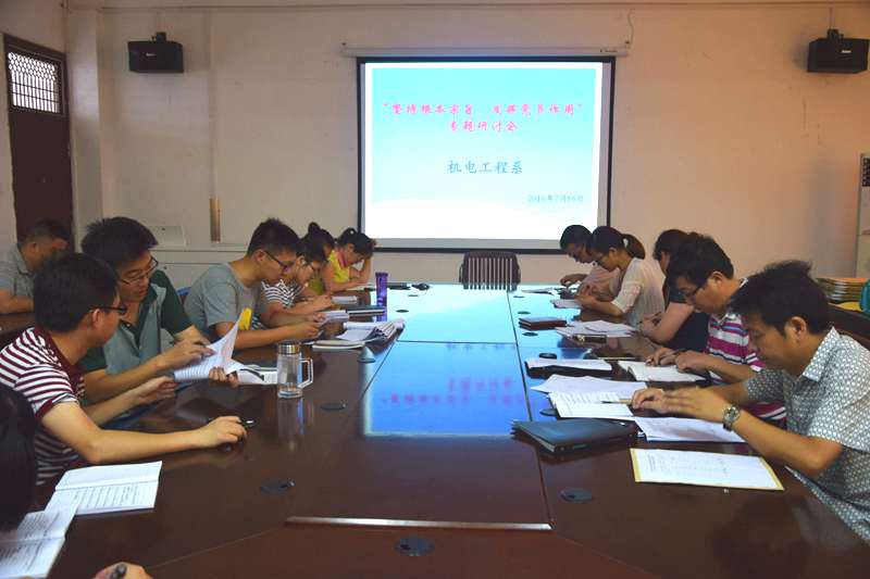 7月16日下午,机电工程系党总支在一栋教学楼208会议室举行“坚持根本宗旨,发挥党员作用”专题讨论会。系分管学生工作负责同志主持会议,机电工程系全体教工党员参加会议。