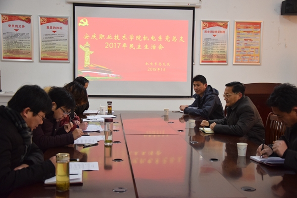 根据《中共安庆市纪委机关 中共安庆市委组织部关于认真开展2017年度县级党员领导干部民主生活会的通知》(庆组字〔2017〕2号)、《beat365中文官方网站2017年度党员领导干部民主生活会实施方案》部署要求和工作安排。1月26日上午,机电工程系党总支在208会议室召开2017年度民主生活会。院党委书记王进、院办公室副主任吴一鸣,组织人事处组织纪检员员王金根到会指导,系党总支全体成员参加会议,会议由系总支负责人刘磊主持。