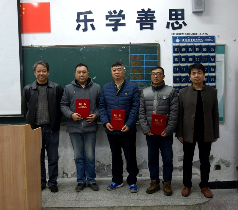 11月27日下午,机电工程学院在1号教学楼204教室举行企业工程师聘用仪式。市职教集团秘书长、副院长李克让主持仪式,并向安徽盈创石化检修安装有限责任公司3位技师颁发聘书。