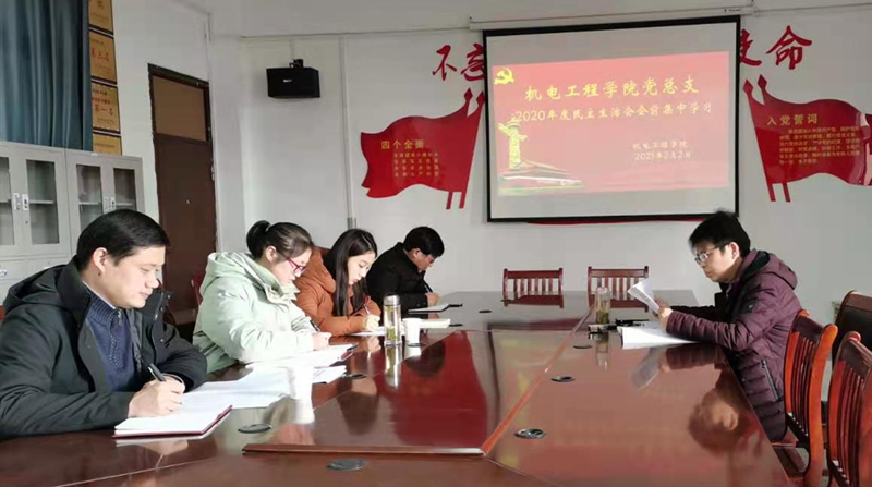 2月2日下午,机电工程学院党总支召开2020年度民主生活会会前专题学习暨谈心谈话会,学院党政班子成员参加,会议由院党总支书记、院长刘磊主持。
