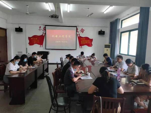 8月28日下午,机电工程学院在1号教学楼208会议室召开新学期学生工作专题会议。院教学工作负责同志、学生工作负责同志、学生管理科、团总支、组织员及专兼职辅导员班主任老师参加此次工作会议。