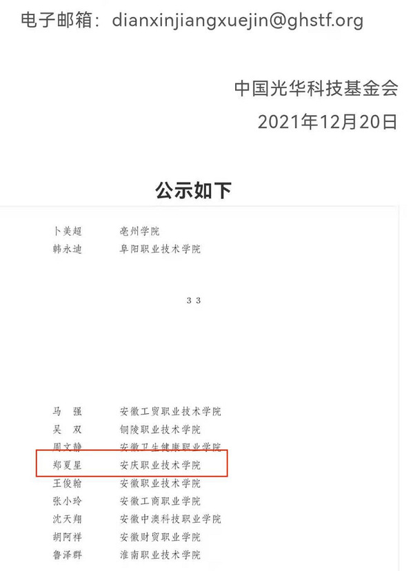 郑夏星同学在校表现优异,曾任班级副班长、 CAD兴趣爱好者协会副会长。曾荣获第五届“互联网+”大学生创新创业大赛国赛铜奖、省赛金奖;第十四届安徽省职业生涯规划暨创业大赛银奖,接连斩获第九届“挑战杯·中国联通”大学生创业计划竞赛金奖;首届安徽省中华职业教育创新创业大赛金奖等多项国家级、省级创新创业类奖项。参与多项国家专利研发和计算机软件著作权撰写。(文:李承鹏 审稿:刘磊)