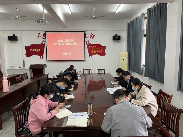 为进一步做好2022届毕业班教育、管理服务等各项工作,推进毕业班实习就业工作进展,完善毕业生离校前的手续材料,4月13日下午机电工程学院在1号教学楼208会议室召开毕业班实习就业工作会议。院分管学生工作负责同志李承鹏、院分管教学工作同志吴福贵、学生管理科科长、教学管理科科长以及全体毕业班专兼职辅导员(含社招班)参会。