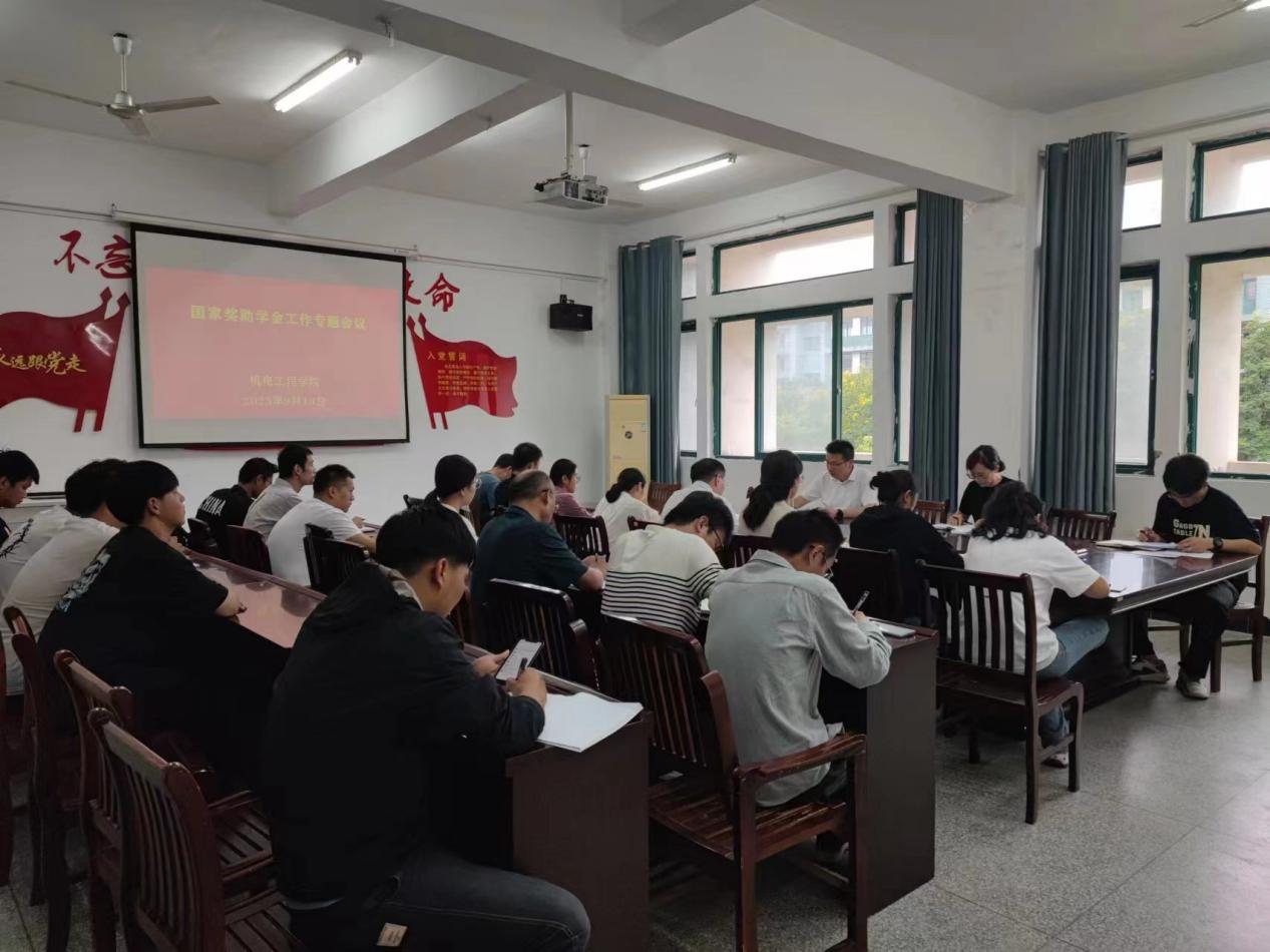 为做好2023学年度国家奖学金、国家励志奖学金等评审工作,9月13日下午三点,机电工程学院在一号教学楼208会议室召开国家奖学金、励志奖学金和资助工作专题会议。学院党总支副书记徐英武主持,学生管理科及全体辅导员、班主任参会。