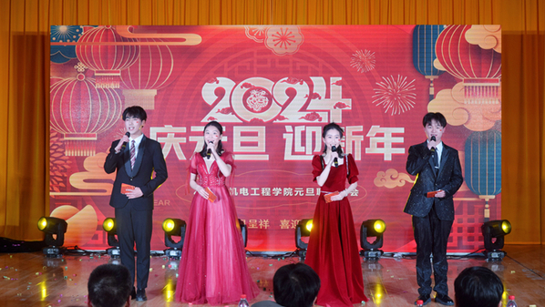 一元复始,万象更新。为庆祝即将到来的2024年元旦佳节,丰富校园文化生活,促进我院学子德、智、体、美、劳全面发展,12月19日晚,机电工程学院在图文信息楼一楼报告厅举办2024年元旦迎新晚会,本次晚会采取线上直播与线下观看的方式同步进行。机电工程学院党总支书记、院长刘磊,党总支副书记徐英武,副院长吴福贵及全体师生共同观看此次晚会。
