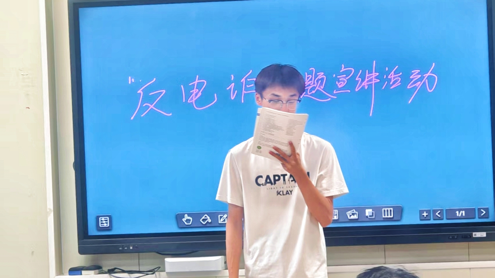 在本次反诈宣传活动中,24数控2班的创新实践尤为亮眼。该班成立“反诈专项活动小组”,创新性地发动全班同学共同参与反诈题材短视频的创作与拍摄。从剧本构思、角色分配到现场拍摄、后期剪辑,全班同学深度沉浸其中,人人都是反诈宣传的“主角”。他们结合身边可能遇到的电信网络诈骗陷阱,如模拟“刷单返利”、“冒充客服退款”、“游戏装备交易诈骗”等场景,生动拆解诈骗套路。拍摄之余,他们还发动全班同学共同参与创作主题黑板报、设计讲解PPT,让同学们从“被动接受防诈教育”到“主动传播反诈知识”。