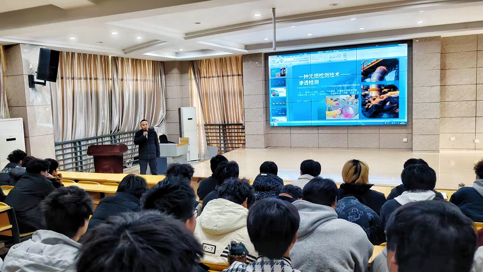夏艳光博士强调,无损检测技术在现代制造业中扮演着至关重要的角色,尤其在石油化工、汽车制造等关键机械结构件中,其应用对于保证产品质量和设备安全具有重要意义。他结合自身工作经历,分享了精益求精的工匠精神,鼓励同学们在未来的学习和工作中,始终保持严谨认真的态度,追求卓越。