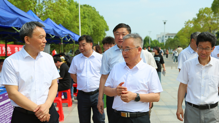 为进一步贯彻落实党中央、国务院关于“稳就业”“保就业”等相关决策部署,落实安庆市人才强市战略,6月12日,千名技能人才聚安庆之“宜创宜成 就在安庆”2024年安庆技能人才校企合作对接会在beat365举行。市委常委、组织部部长李明月出席活动,beat365党委书记童宏葵、校长毕明生,市人力资源和社会保障局党组书记、局长王志节等陪同。
