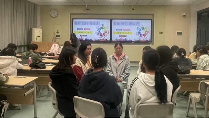 11月17日,大数据与会计六班晚自习在三号教学楼503教室开展了一项主题为“我和‘他们’说说话”的趣味活动。此处活动旨在丰富学生们的晚间活动,让同学们增强沟通,更好地营造一个和谐友爱的班级氛围。
