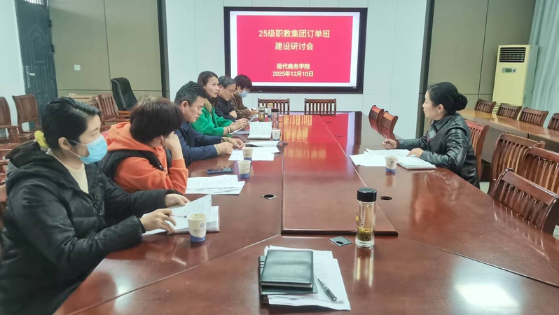 为进一步推动专业建设与产业需求精准对接,深化产教融合、校企合作,2025年12月10日下午,现代商务学院组织召开“订单班建设工作研讨会”。会议聚焦校企合作订单班年度工作开展和奖补经费使用等议题,旨在通过校企协同育人,培养更多适应本地产业企业需求的高素质技术技能人才,现代商务学院教学负责同志主持会议,教学管理科科长、专业负责人、相关辅导员参加会议。