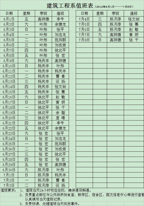 2011-2012学年度第二学期建筑工程系教学值班安排表