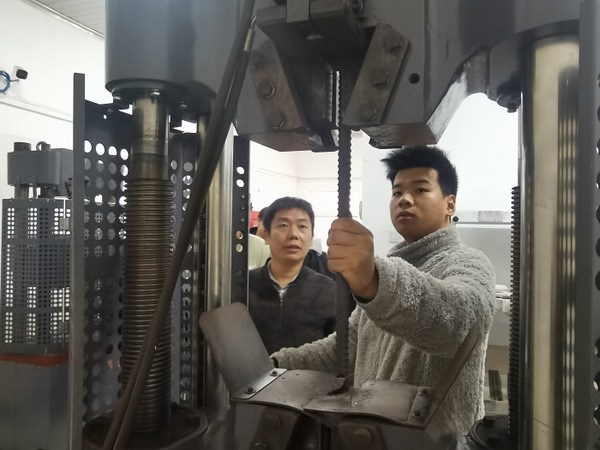 实训教学按照细分子模块,在各个专业实验室分组轮流进行,利用来自在建工程的各类检测材料,严格按照行业标准与规范,分别由11位企业实验师手把手的示范指导,学生一一动手操作完成。来自 24 级建工 1 班的琬玉同学在操作完钢筋抗拉试验后兴奋的说:“刚开始,我看企业指导老师给钢筋加拉力时躲得远远的,害怕听到钢筋崩断的声音,等到自己上手操作,周围有老师和同学的帮助,仪器设备上还有防护网,就一点不害怕了”。在水泥细度试验室,校内授课教师方锐说:“我也是第一次面对真实工程项目对水泥进行细度分析,心里还有点紧张,幸好来之前做了充足准备,看来到企业现场来上实训课备课要求更高。”