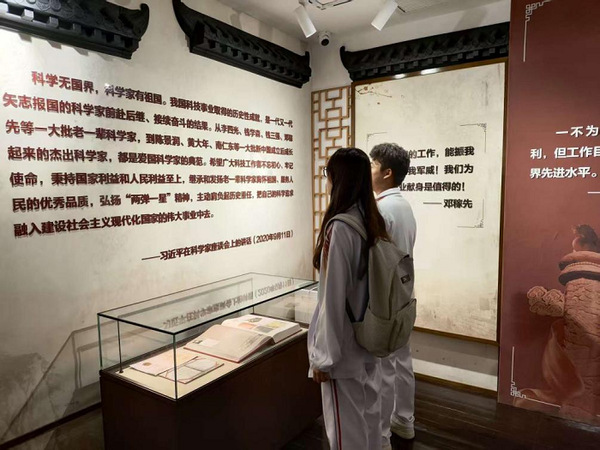 师生们怀着崇敬的心情步入这座徽派古宅,在讲解员的引导下,大家依次参观了各个展室,仔细观瞻了邓稼先先生生前的工作手稿、生活用品、历史照片以及复原的工作场景。一幅幅珍贵的图片、一件件朴素的实物,生动再现了邓稼先先生从立志求学、远渡重洋到毅然归国、隐姓埋名,最终为我国“两弹”事业呕心沥血、奉献终身的伟大历程。他“干惊天动地事,做隐姓埋名人”的崇高品格,以及面对艰难险阻时勇毅不屈的科学家精神,深深触动了在场的每一位师生。