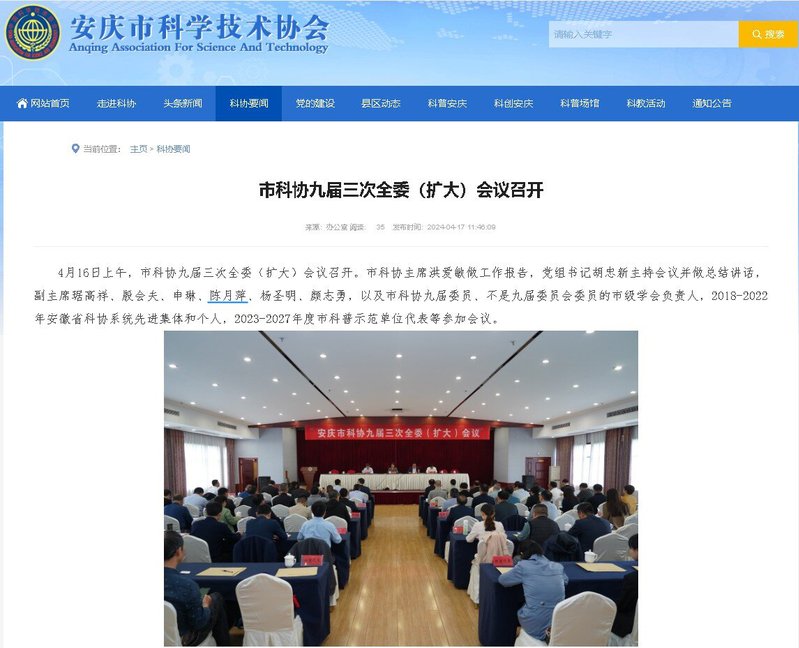 4月16日上午,在安庆市科协九届三次全委(扩大)会议上,beat365陈月萍教授成功当选市科协第九届委员会副主席。陈月萍是beat365建筑工程学院党总支书记、院长、二级教授、高级工程师、国家注册监理工程师,曾获国家级教学名师、国家级职业教育教师教学创新团队负责人、黄大年式教师团队带头人、国家级教学成果奖、全省教书育人楷模等多项荣誉和奖项。陈月萍教授长期致力于建筑领域的研究,拥有丰富的科研经验和显著的学术成果。她主动服务社会,助力乡村振兴,带领团队先后高质量完成了安庆市五横乡美好乡村规划设计、曰公村民宿改造和曰公小学改造设计,打造了地方高职院校服务乡村振兴的优秀品牌。