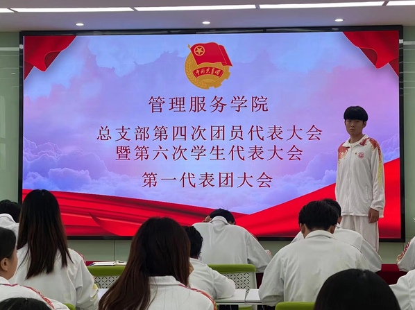 10月28日上午,共青团beat365中文官方网站管理服务学院总支部第四次学生代表大会暨第六次学生代表大会在双创楼204教室召开。管理服务学院党总支书记、院长陈颖、党总支副书记丁凡、团总支副书记练思雨、教师代表王子淳出席,60名团员及学生代表参加会议。会议由练思雨老师主持。
