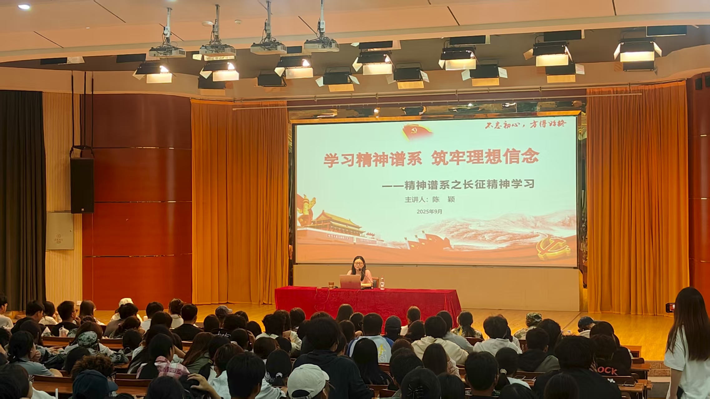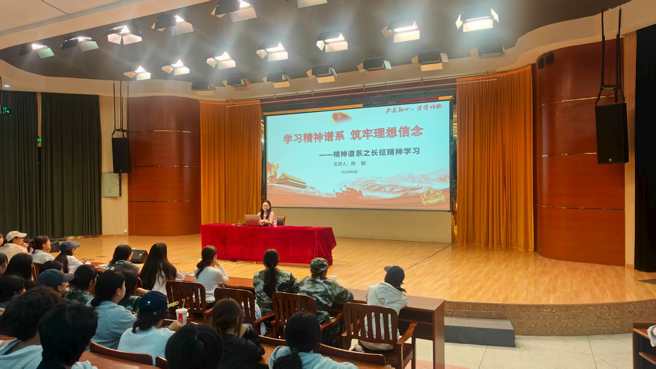 为深入学习贯彻习近平新时代中国特色社会主义思想,引导2025级新生坚定理想信念,树立正确的人生目标,9月20日晚,管理服务学院在图文信息中心一楼报告厅开展“学习精神谱系 筑牢理想信念”的专题讲座。本次讲座由学院党总支书记、院长陈颖主讲,全体新生及辅导员代表现场聆听。