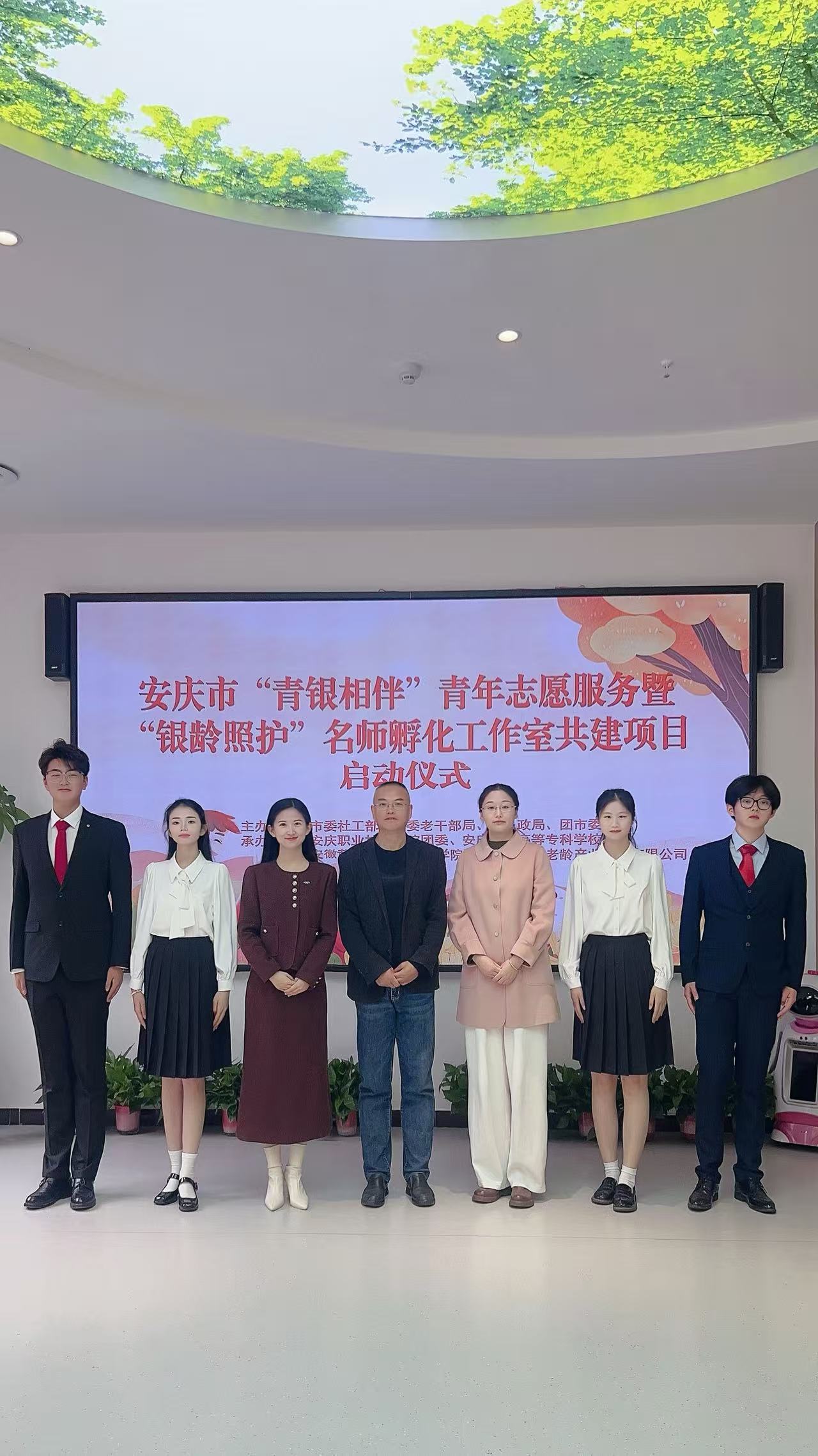 10月26日上午,安庆市“青银相伴”青年志愿服务暨“银龄照护”名师孵化工作室共建项目启动仪式在怡人堂晶海养老服务中心顺利举行。市人大常委会副主任叶林霞出席仪式,市委社会工作部、市委老干部局、市民政局、团市委主要负责同志,校党委委员、统战部长李五一等参加了活动。