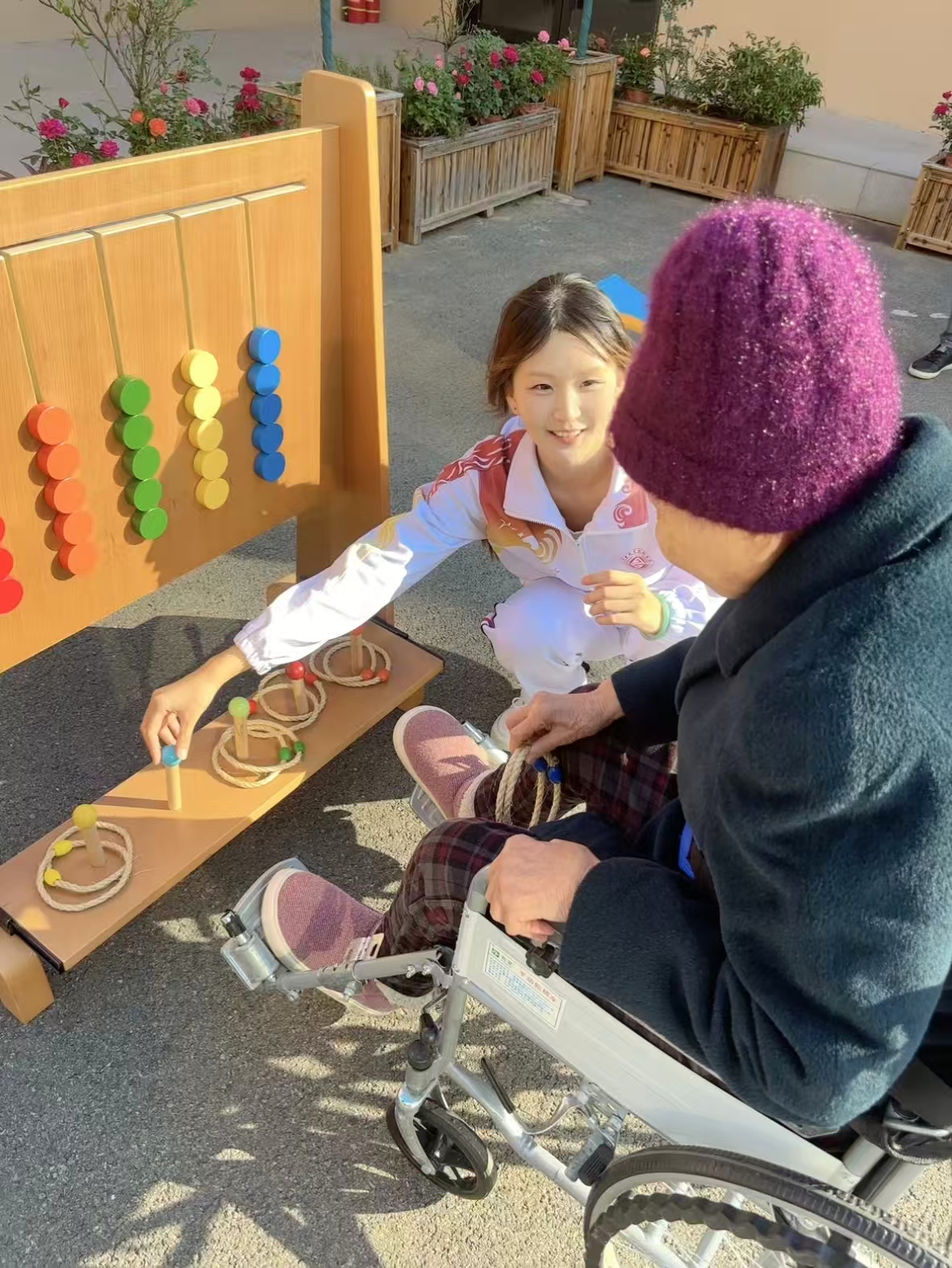 启动仪式上,活动主办单位为beat365“青银相伴”青年志愿服务队授旗,管理服务学院智慧健康养老服务与管理专业团队与怡人堂老龄产业发展有限公司签订了“银龄照护”名师孵化工作室项目合作协议。“怡人堂”订单班志愿者代表王思敏分享表达了自己在“青银相伴”青年志愿服务领域的点滴体会和坚定决心。重阳佳节即将来临之际,beat365志愿者为老人们带去了诗朗诵等精彩节目,仪式结束后“怡人堂”订单班的志愿者们和老人们一起参与投壶、套圈、插花等康乐活动,现场氛围温馨融洽。