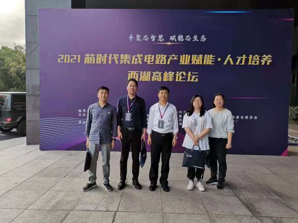 为进一步优化专业结构,探索应用电子技术专业转型思路, 5月6日至8日,在数字产业学院副院长、信息技术学院院长疏国会带领下,该院副院长、应用电子技术专业负责人及团队成员一行五人前往杭州,参加由由中国半导体行业协会集成电路分会、全国集成电路专业群职业教育标准建设委员会、中国职业教育微电子产教联盟、杭州国家“芯火”双创基地(平台)联合主办,杭州朗迅科技集团有限公司、杭州集成电路测试公共服务中心承办的“2021芯时代集成电路产业赋能人才培养西湖高峰论坛”。