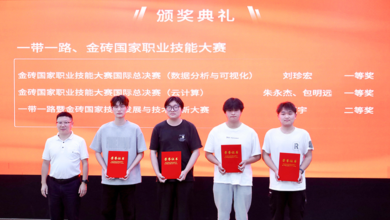 典礼在庄严而热烈的氛围中拉开帷幕。伴随着激昂的颁奖音乐,校级赛、省级赛、“一带一路”及金砖国家职业技能大赛的获奖选手依次登台领奖。学院专业建设负责人、行政管理人员及分管领导为获奖选手颁发证书,台上笑容洋溢,台下掌声雷动,现场气氛热烈,为获奖选手们送上了真诚的祝贺。