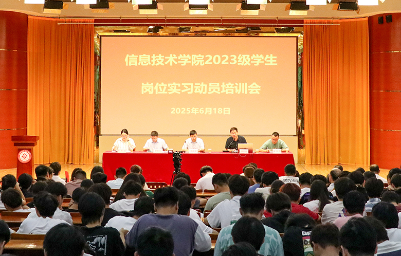 为切实做好学生岗位实习管理工作,确保实习质量,6月18日下午,信息技术学院在图文一楼报告厅组织召开信息技术学院2023级学生岗位实习动员培训暨安全教育大会。会议采用“线上+线下”相结合的模式,除主会场以外,同时在3个智慧教室设置了视频分会场,组织学生通过网络直播同步收看。信息技术学院行政管理人员、专业建设负责人、实习指导老师、2023级辅导员及全体799名学生参加了会议,会议由信息技术学院副院长熊祖涛主持。