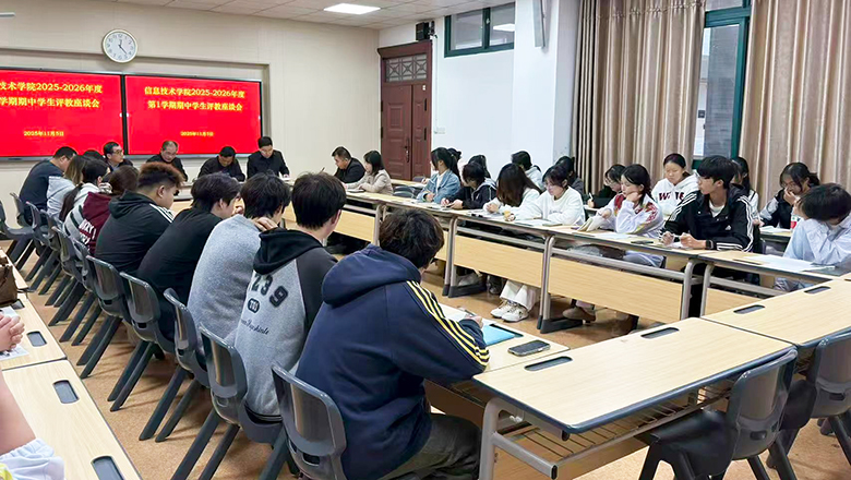 为全面深入了解教学情况,强化师生间的有效沟通,切实提升教学质量,11月5日下午,信息技术学院在2号教学楼203教室组织召开2025-2026学年第一学期期中学生评教座谈会。此次座谈会特邀校督导专家陈再高、陈兆著、吴跃虎出席,各专业建设负责人、教学管理人员以及学生代表参会。