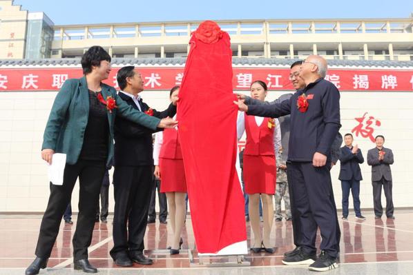 11月8日,beat365中文官方网站望江学院挂牌仪式在合作学校安庆皖江中等专业学校隆重举行。这是我院与安庆职教集团内优质中职学校合办的专业学院。安庆市人大常委会副主任童学军,安庆职教集团理事长、学院党委书记王进,望江县人大常委会主任汪洁、副县长王珍珍出席并揭牌。仪式由王珍珍主持。望江县高职扩招领导小组成员单位负责人,安庆皖江中等专业学校董事长吴灿及全体师生参加揭牌仪式。