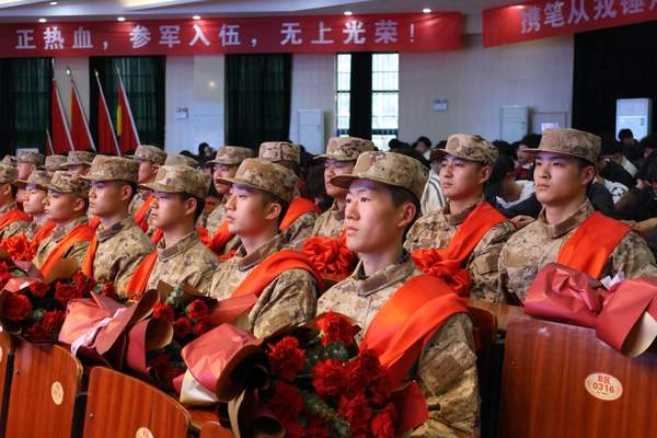 毕明生还对在场同学提出三点期望。一是对标楷模,眼里有榜样。希望在场的同学们以入伍学长为榜样,见贤思齐、躬身践行。二是胸怀家国,心中有志向。希望在场的同学们以“国之大者”为立身之本,将“小我”融入“大我”,将青春理想深植于民族复兴的沃土。三是不负使命,肩上有担当。希望在场的同学们以“只争朝夕”的紧迫感学好科学知识,掌握专业技能,练就报国本领,让青春在党和人民最需要地方绽放光彩。