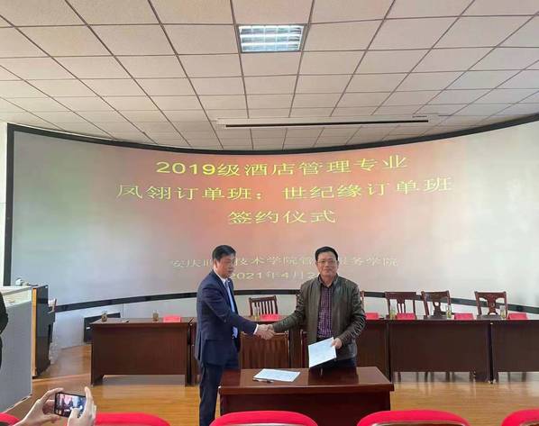 最后,校方代表杨厚松分别与安庆碧桂园凤凰大酒店、安庆世纪缘国际大酒店负责人进行了现场签约。本次订单班的成功签约,为酒店管理专业下一步开展更多的校企联合育人奠定了基础。(文:李敏 图:李光寿等 审核:杨厚松)