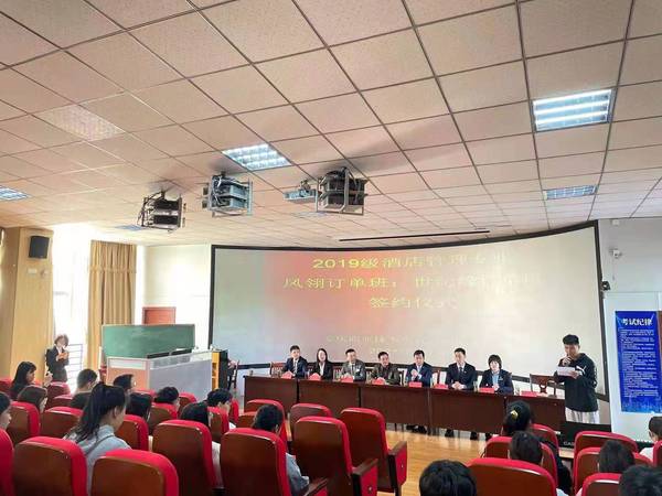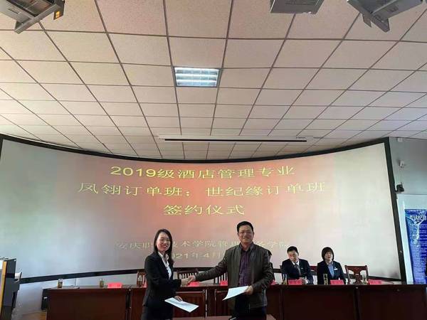 4月28日上午,管理服务学院在3号教学楼216教室举行校企业合作酒店管理专业 “凤翎订单班”和“世纪缘订单班”签约仪式。管理服务学院副院长杨厚松、企业方代表、酒店管理专业部分教师和冠名班全体学生参加了此次签约仪式。仪式由院长助理兼酒店管理专业建设负责人李敏老师主持。