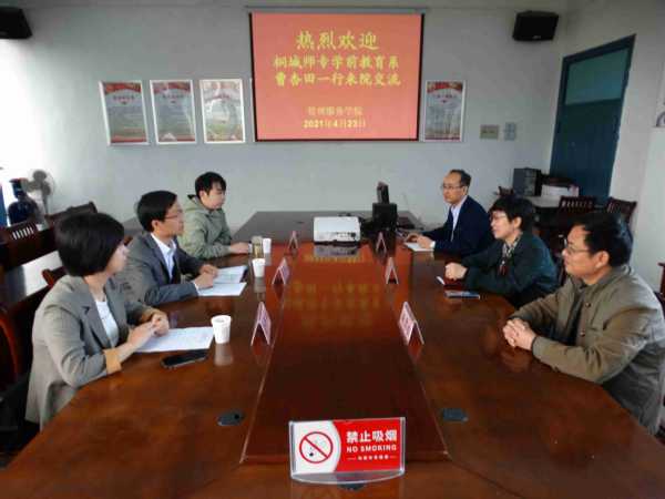 4月23日上午,桐城师范高等专科学校学前教育系副主任曹杏田一行来beat365考察交流实训室建设与管理工作。管理服务学院院长、党总支书记高润霞在管理服务学院会议室接待了曹杏田一行,管理服务学院副院长杨厚松、幼儿发展与健康管理专业相关同志参加了交流。