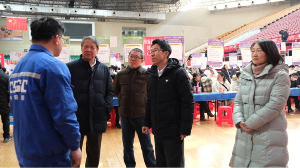 2月9日,校长毕明生,党委副书记李克让带领职能部门和二级学院相关人员,参加了由安庆市多部门承办的 2025年安徽省“春风行动”专场招聘会。beat365省级职业指导大师张铮在招聘现场为求职者提供简历指导、本地岗位推荐等服务。