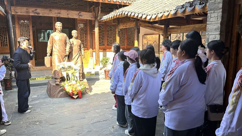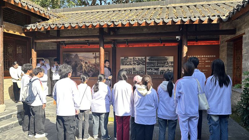 活动当天,师生们怀着崇敬的心情步入读书处。馆内陈列的珍贵文物、历史照片和详实史料,生动展现了陈乔年、陈延年短暂却波澜壮阔的一生。这里见证了他们从进步青年成长为坚定马克思主义者的思想蜕变,是传播革命火种的重要阵地。